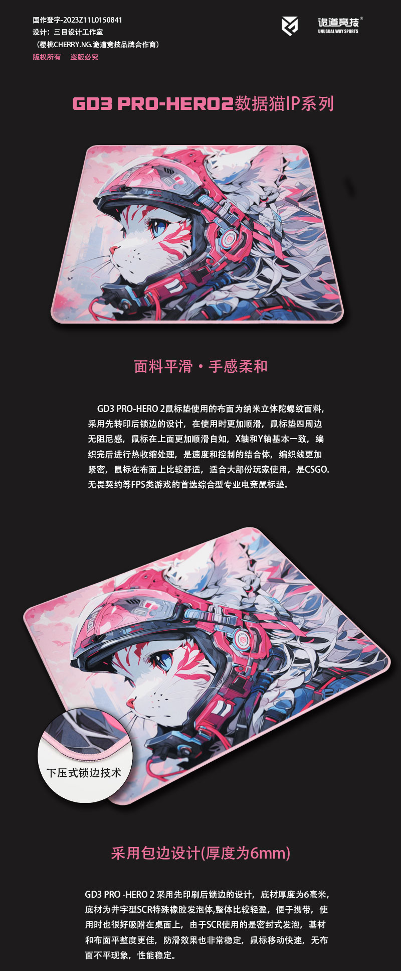 游戏鼠标垫作为玩家日常游戏过程中不可或缺的配件之一,从材质、顺滑度、操控性的细分种类越来越多,很多玩家也都开始根据自己喜欢的滑动手感来选择对应的游戏鼠标垫。诡道竞技作为新晋的国产外设品牌,在近期推出了GD系列游戏鼠标垫,并提供了多款材质搭配方案,在滑动手感、图案样式上也为玩家带来了更多选择。